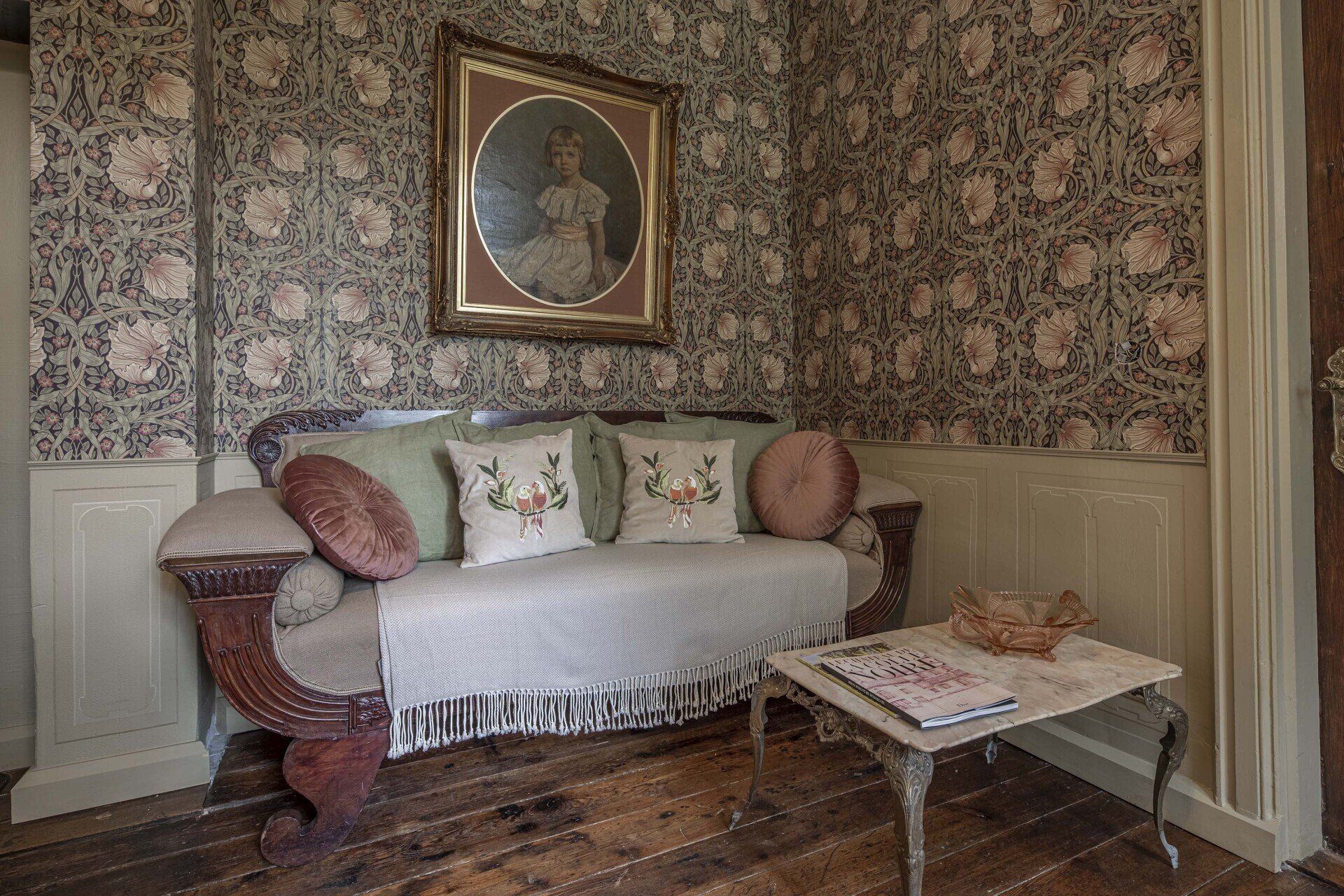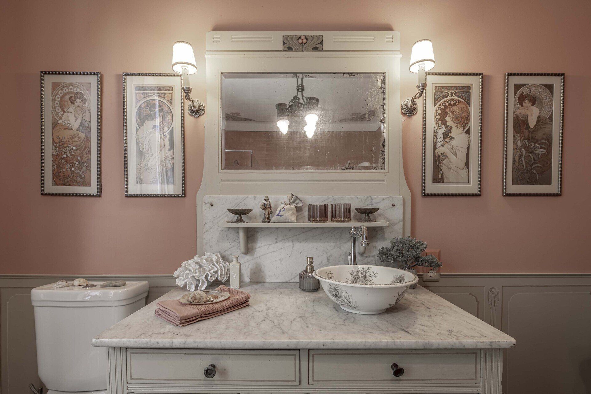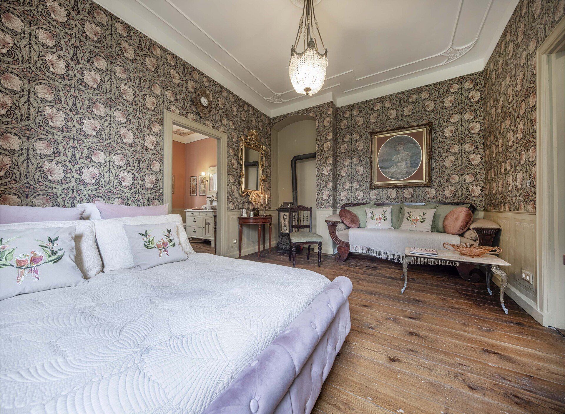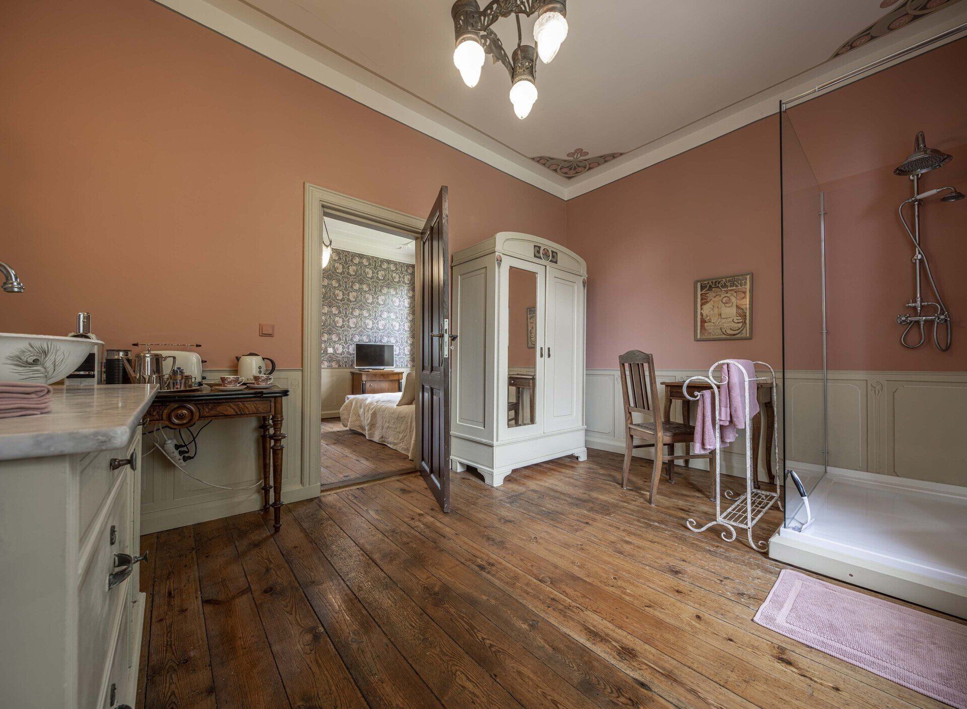 Das Interieur des Zimmers steht ganz unter dem Motto "Jugendstil". So wurde hier liebevoll Interieur um die vorletzte Jahrhundertwende zusammen getragen, welches in seiner Farbigkeit ganz harmonisch aufeinander abgestimmt wurde.
