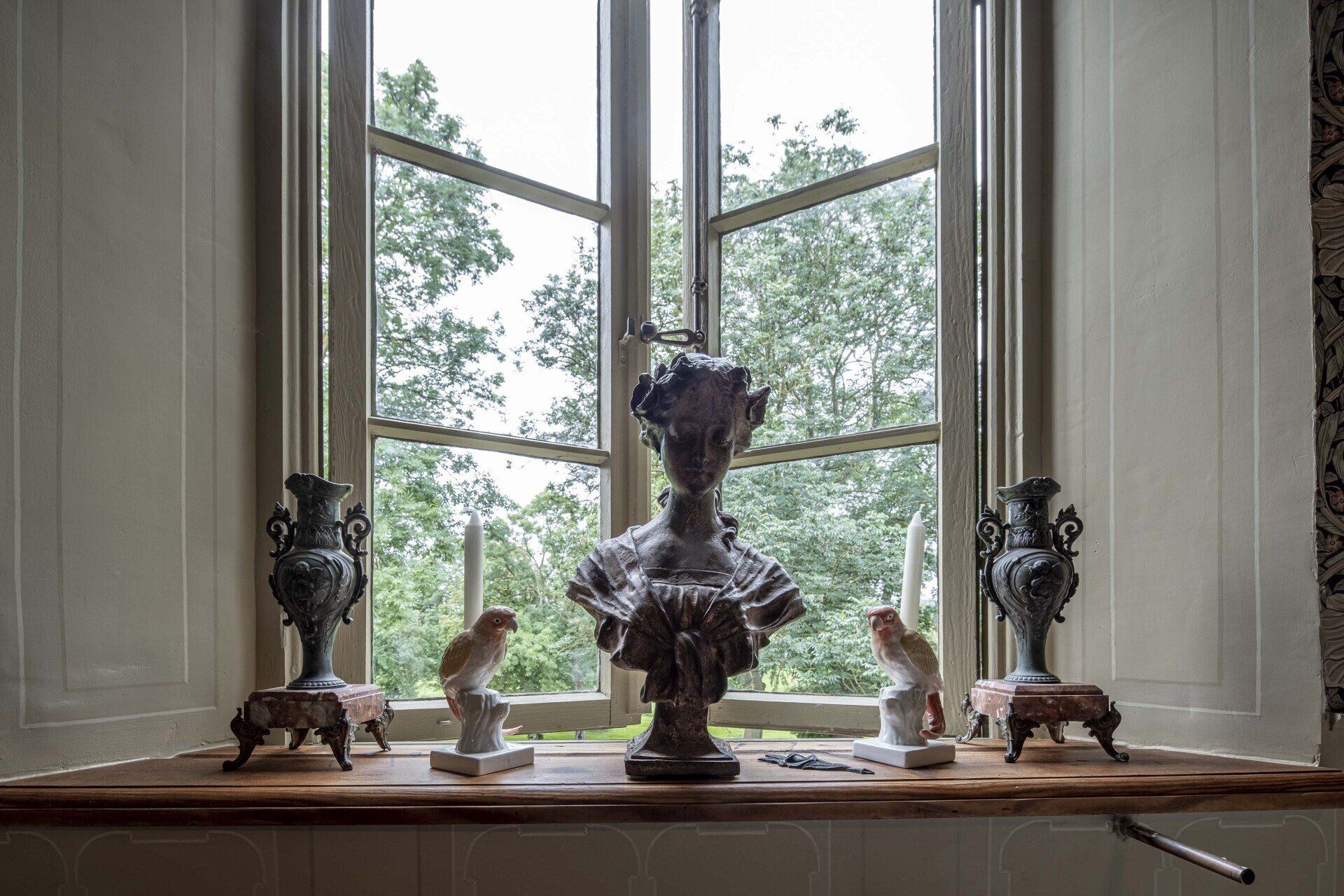 Im Schlafzimmer hat man den wohl schönsten Blick des ganzen Hauses, in den westseitigen Park mit altem Baumbestand.